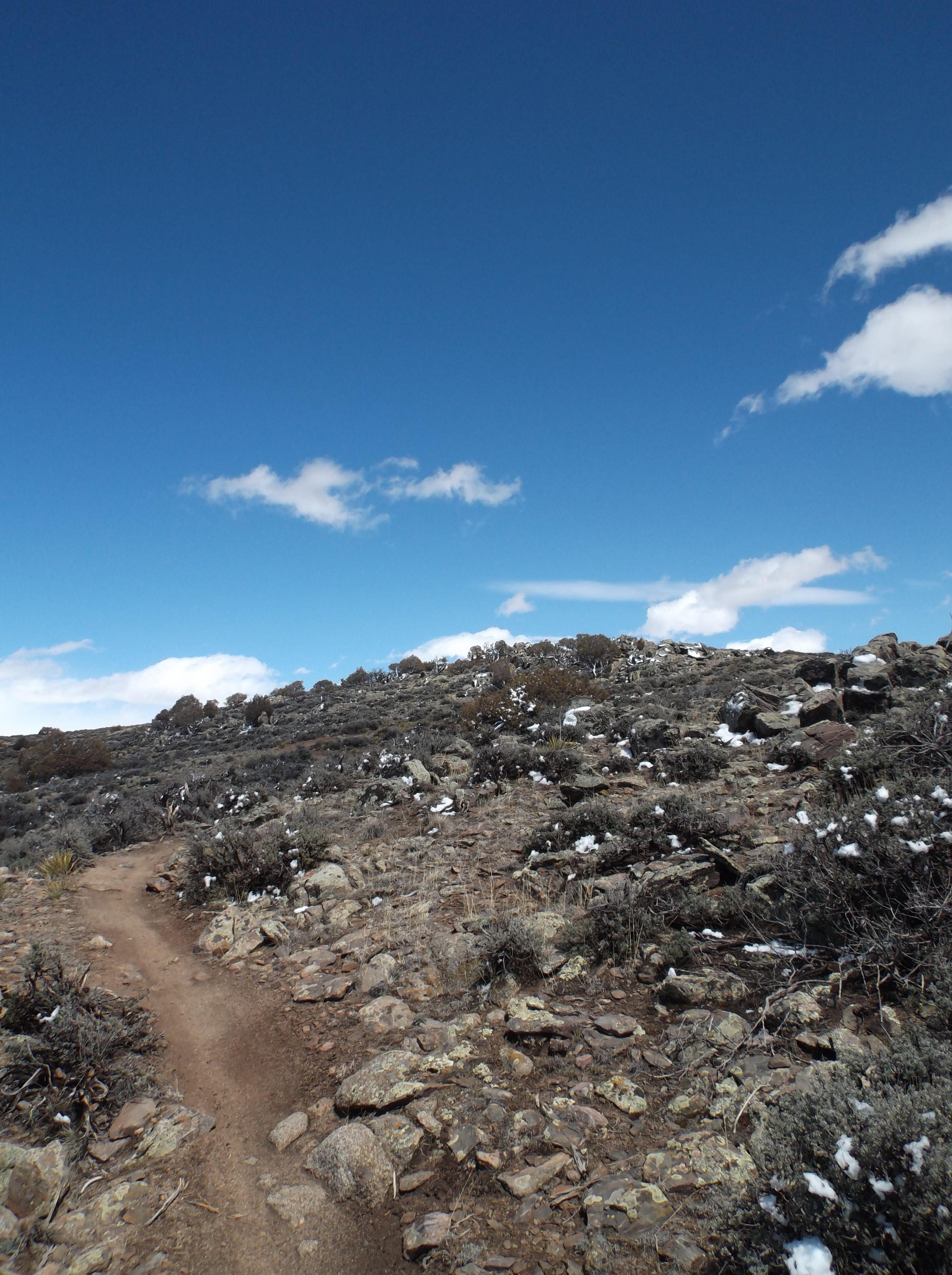 Climbing up Josie’s, dry dry dry, was so surprised. The wind blown snow was sticking just to the windward side of the sage, rocks and trees. The next trail, Gateway was a mess. Hit and Miss