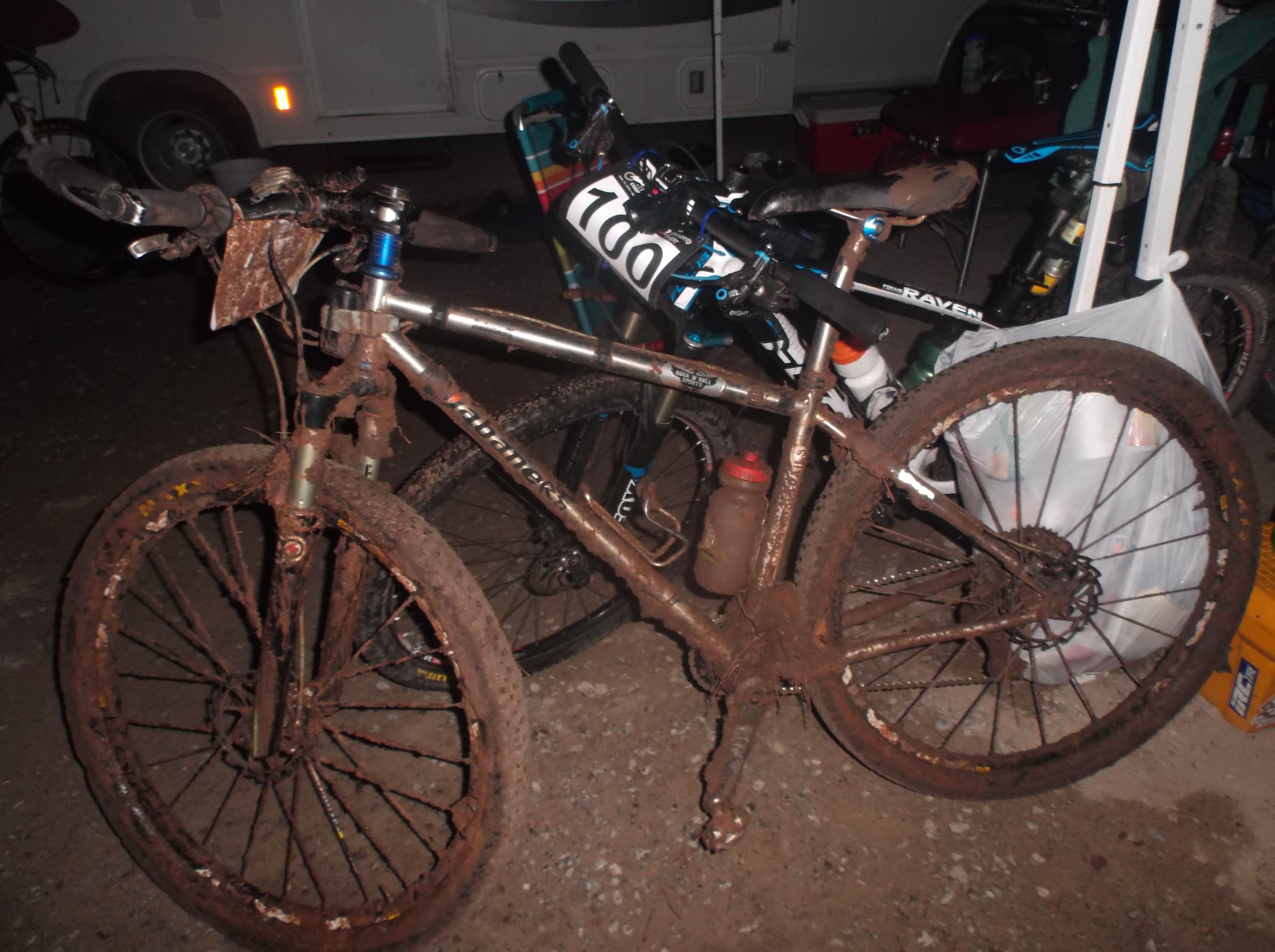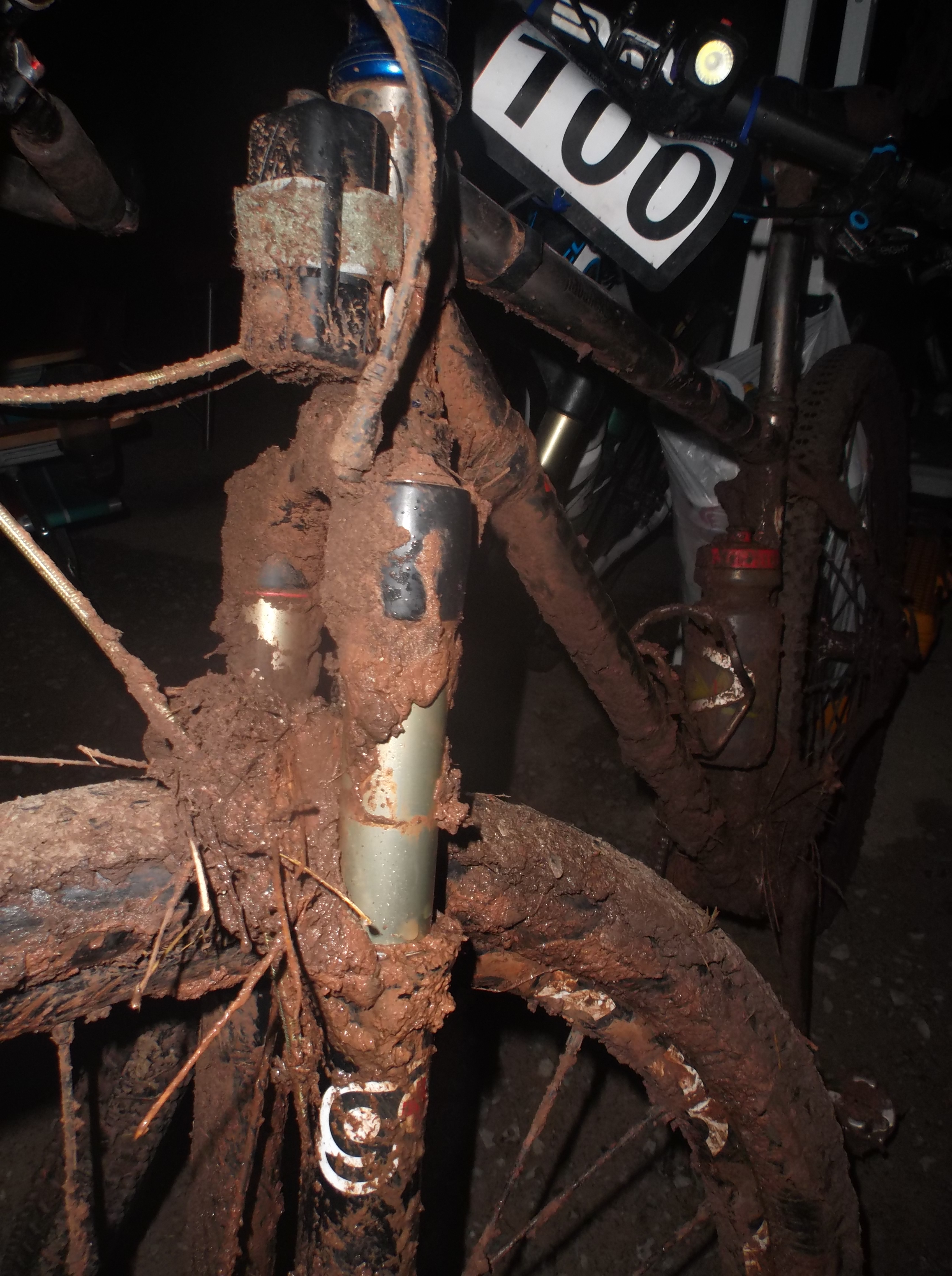 Wow… brutal event. I’ve only ever done one 24-hour event, and that was as part of an old farts team (which we happily won, though). I can’t even imagine trying to race in those conditions – I used to ride in Korea and would hit similar mud – the same stuff that would stop tanks dead in their tracks works just as well on bikes. I’d get about 1.1 revolutions of the wheels before I ground to a sloppy halt. Once I had some trouble clipping in on one pedal, and found out it was because the cleat had pulled out of my shoe (didn’t figure that out ’til I got home and hosed off the bike). Thinking about trying to continue riding in a 24-hour race in those conditions melts my brain. I do hope you go onto other similar events, just to put the questions to their final rest.