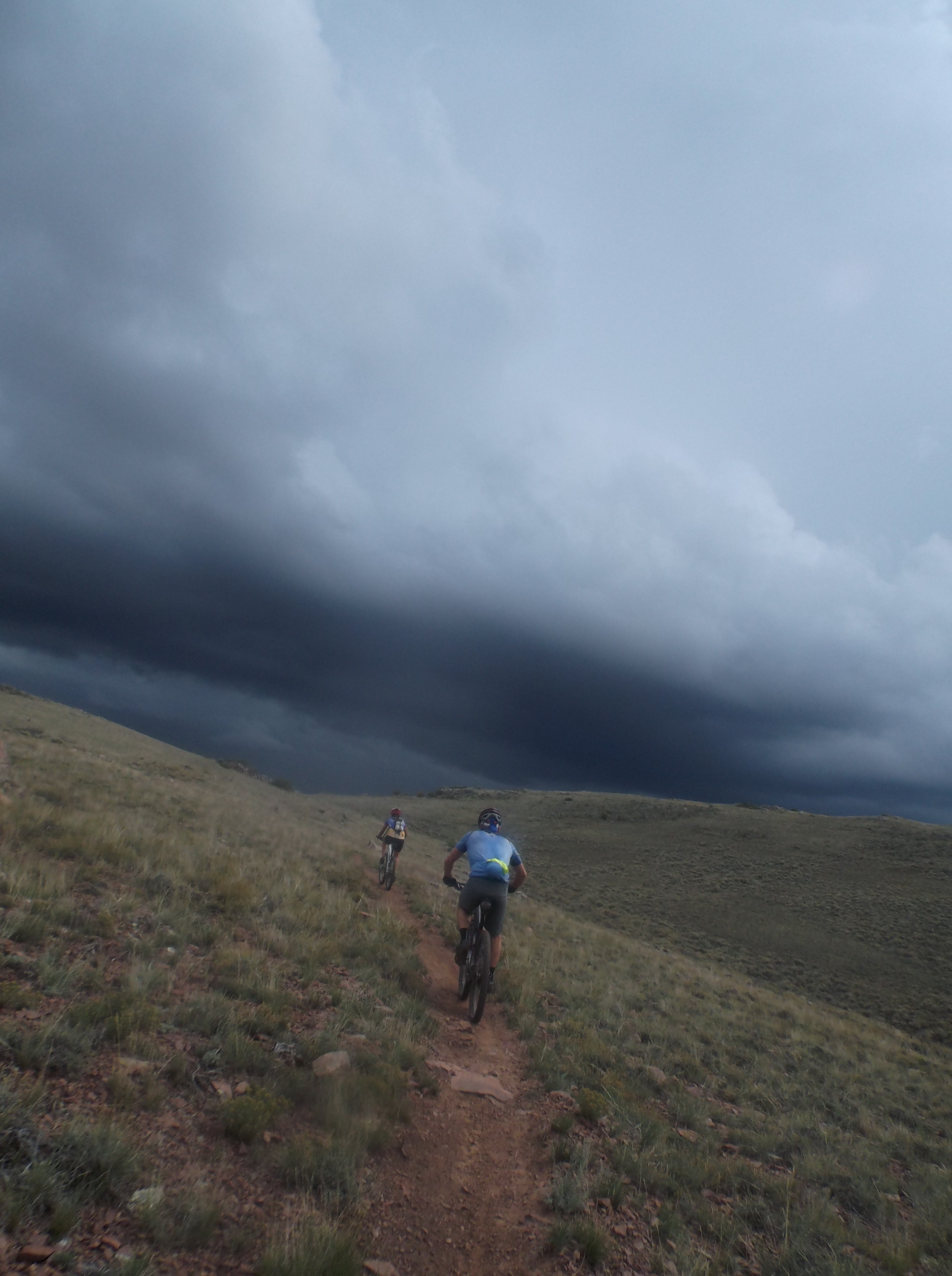 What a simple bike ride can do. It does things for my brain that nothing else does, (except maybe skiing, but that’s another story) It keeps me in shape and wanting to be in better shape. It makes me smile, makes me want to try, makes me want to share this experience with everyone. For how much better would things be if everyone could be made to feel small, in love with the world, happy, healthy all at the same time and in such an simple and easy way. No drugs, not chemicals, no gasoline, just a bike, some trails, sprinkle in a few friends, a huge storm looming to keep that perspective of being just a speck in this universe. Makes all the BS I get stuck on, obsess over fall to the side, slip off my back.