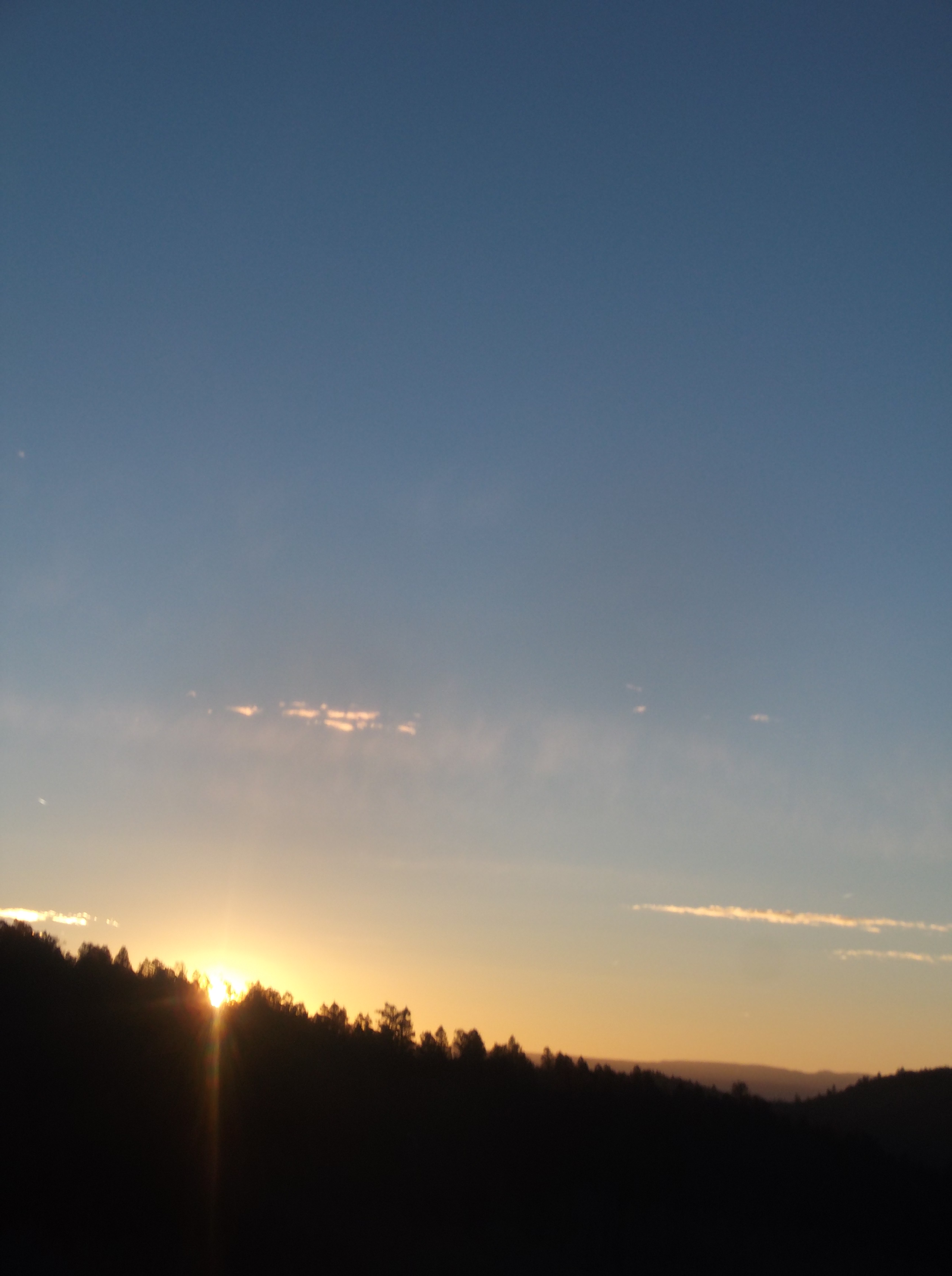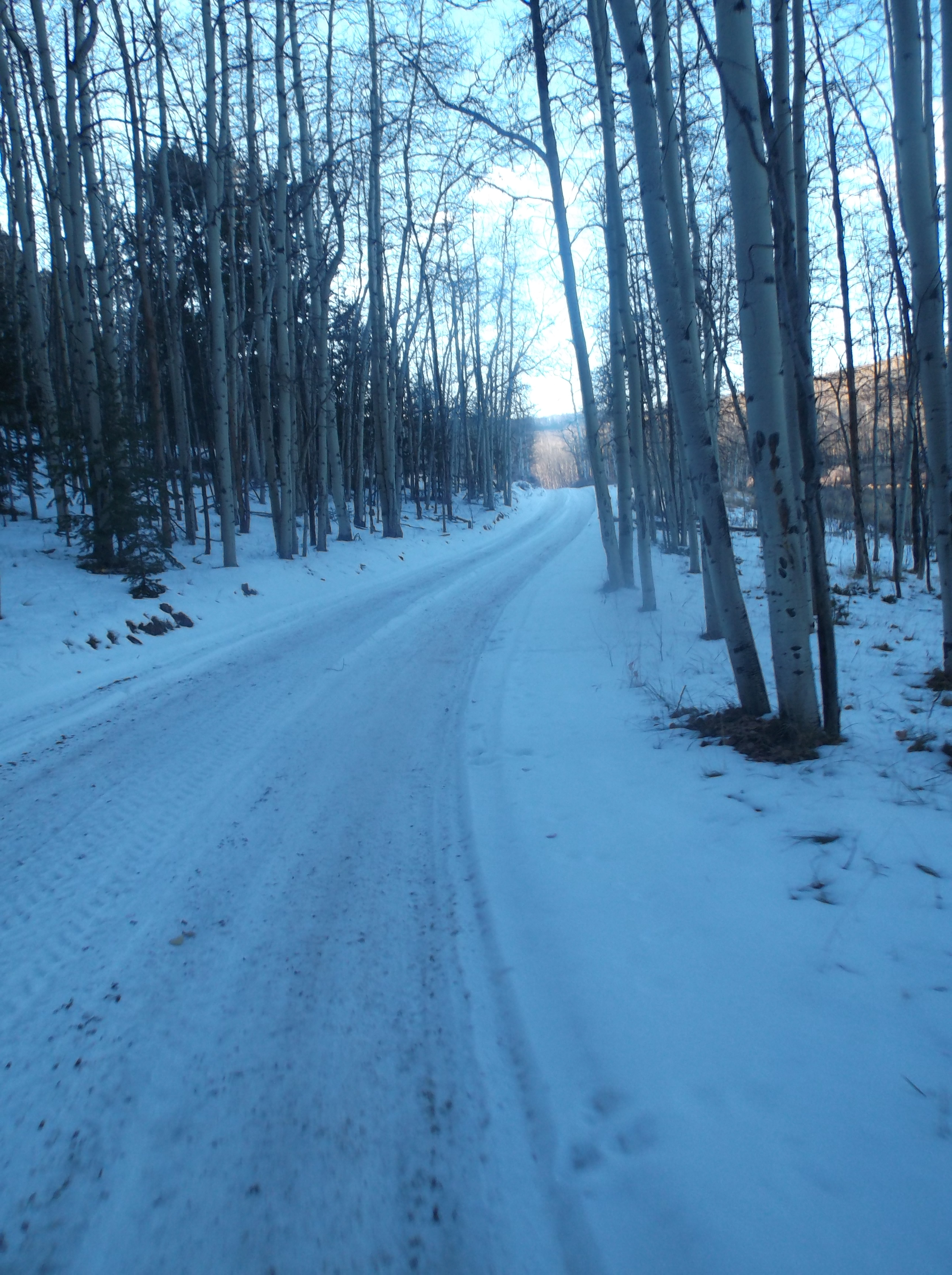 I try and keep a good pace, I try and hammer the hills. Oh it aches, it hurts, my heart rate bounces all over the place. I feel that “damn I suck” feeling welling up. Why am I such a putz, such a wimp? Why does doubt always challenge me in these moments? With things like the TD in my head I am ashamed at being this easily fatigued. “Suck it up Buttercup” I tell myself, get after this Now! The sun is casting huge shadows, hiding behind the dark timber. I climb the last few steep little climbs, I eat my last morsel of food, put on my reserve layers and point it home. Somehow I manage to keep the throttle mashed all the way home. Standing up out of the saddle, giving it all I have, racing the setting sun. Tired, cold and drained from the day I arrive at home. The GPS tells me it was 66.6 miles today,,,hmm, no wonder. Despite feeling low and slow I managed to average 12.4 mph…Ok, Ok, I can live with that!