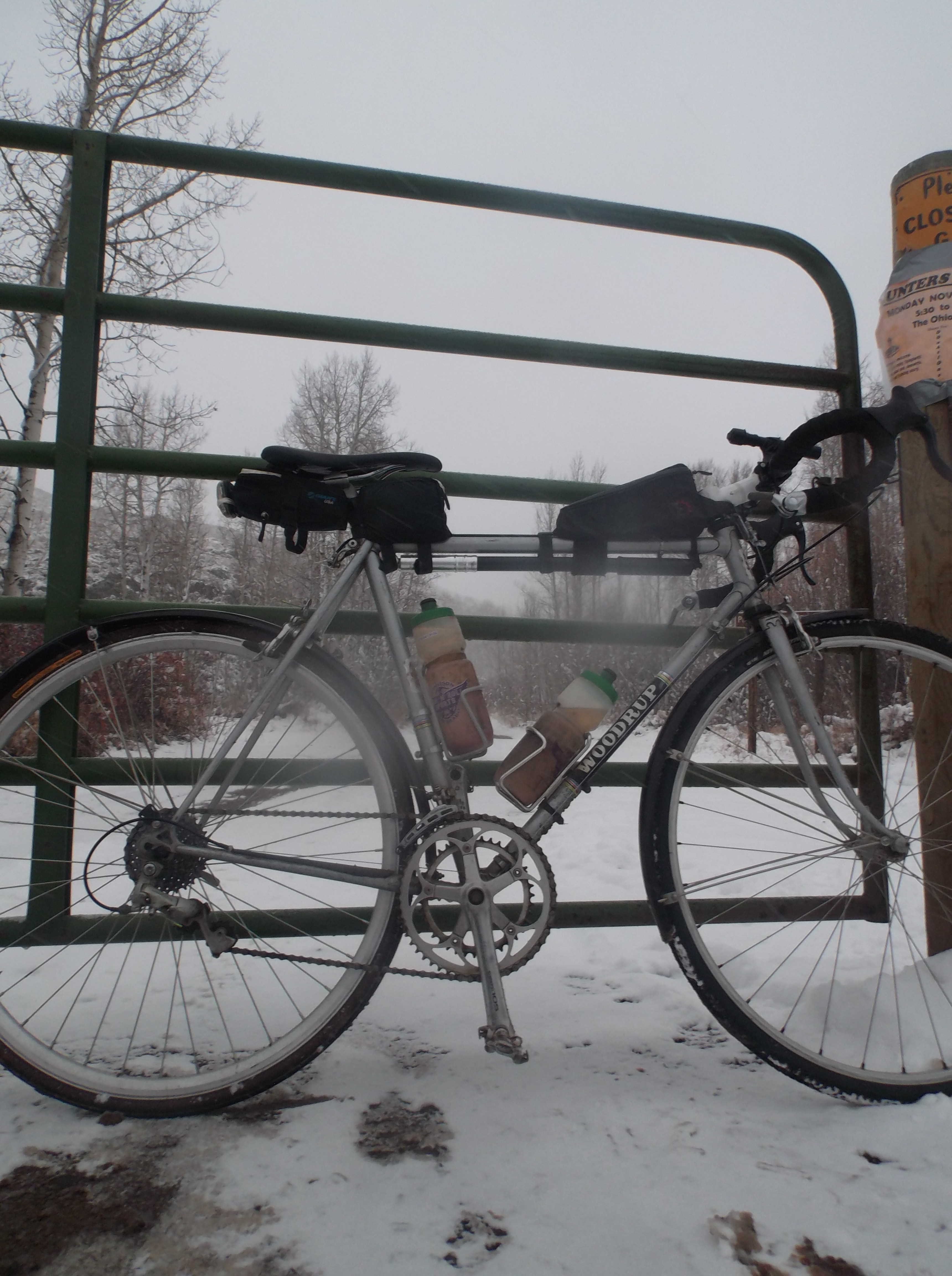 Luckily I have some great friends, one of them happens to be my boss, DaveMoe! He has a bike problem of sorts, after 30+ years of being a bike shop owner, bike racer, bike geek, he has ended up with a few dusty old bikes sitting idle. A few new parts, a few hours of tinkering and the Woodrup is back on the road. I didn’t waste anytime after getting her road ready to head out for a ride. Sure it snowed last night, sure it was supposed to snow some more, damn it I had a new toy to play with!