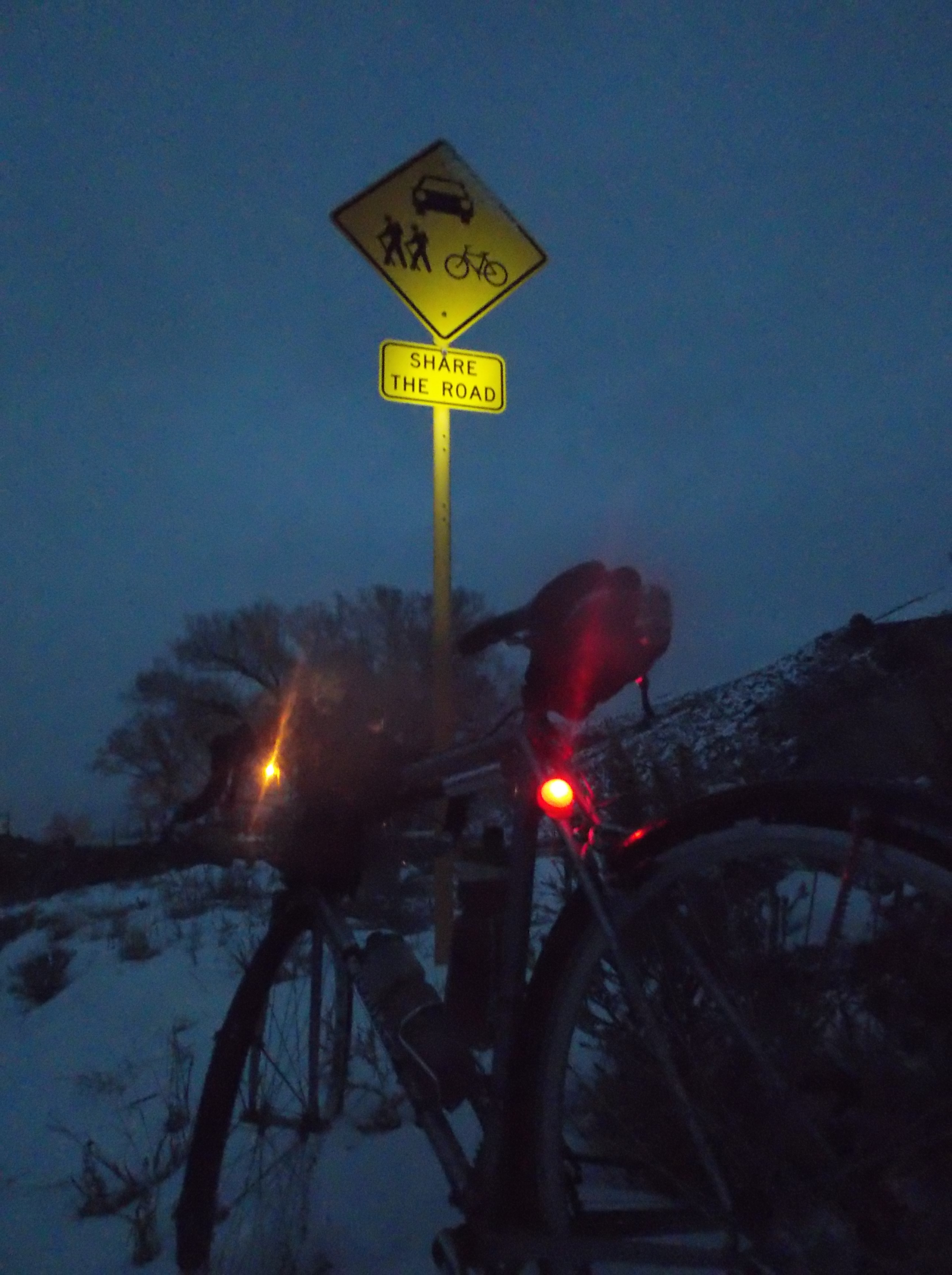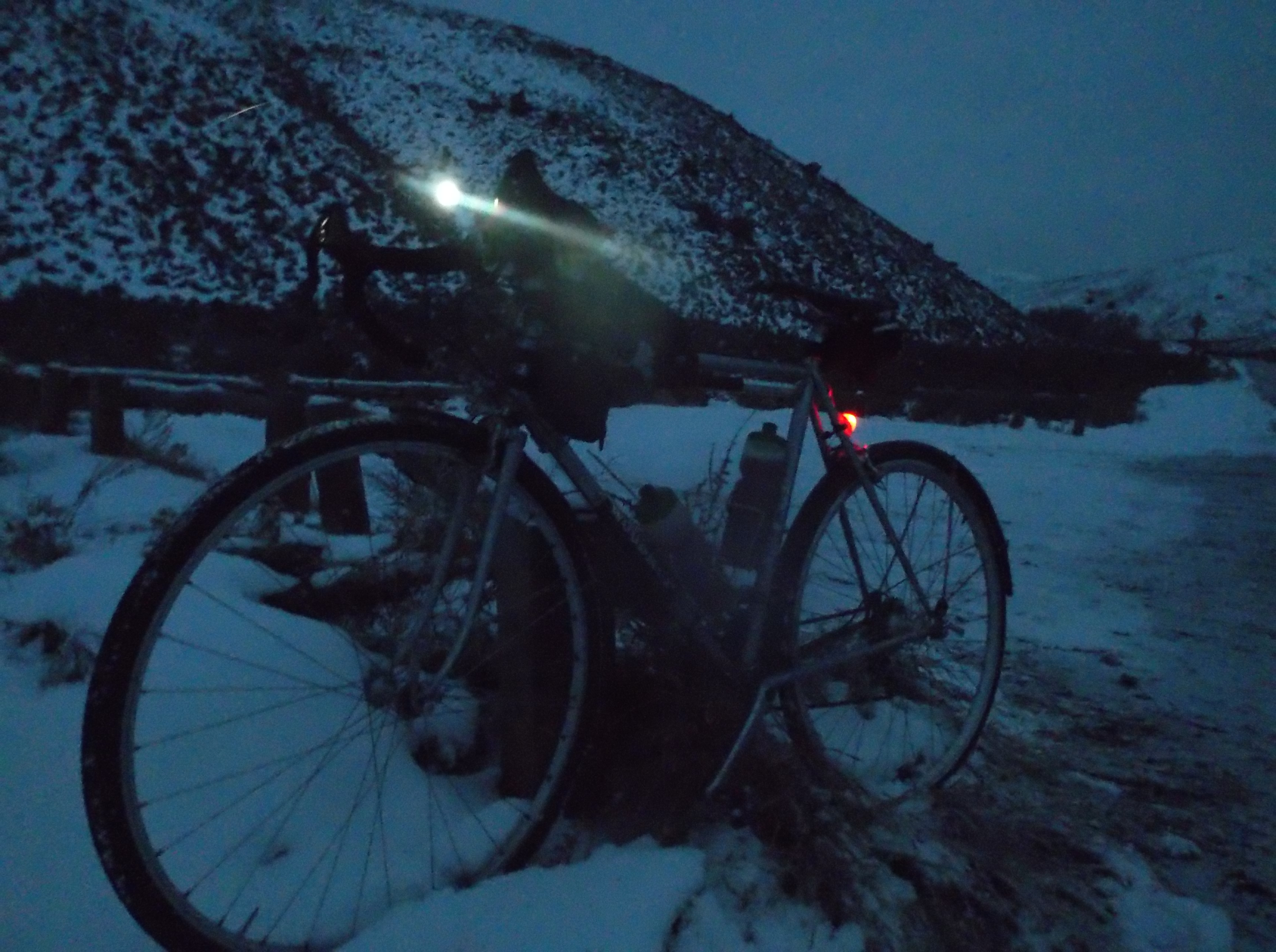 After work today I still had a 4 hour ride lingering on my horizon. Fudge, I am tired, really want to curl up and take a nap. Instead I roll out onto the highway into the wind, with a few drifting snowflakes floating past. I get into the rhythm of my spinning pedals, looking into the future, yet feeling very much in the now. Really enjoying the fast cruising on the skinny tires, using the drops to fly even with a headwind. I turn off Hwy 50, onto 149 and begin to climb.