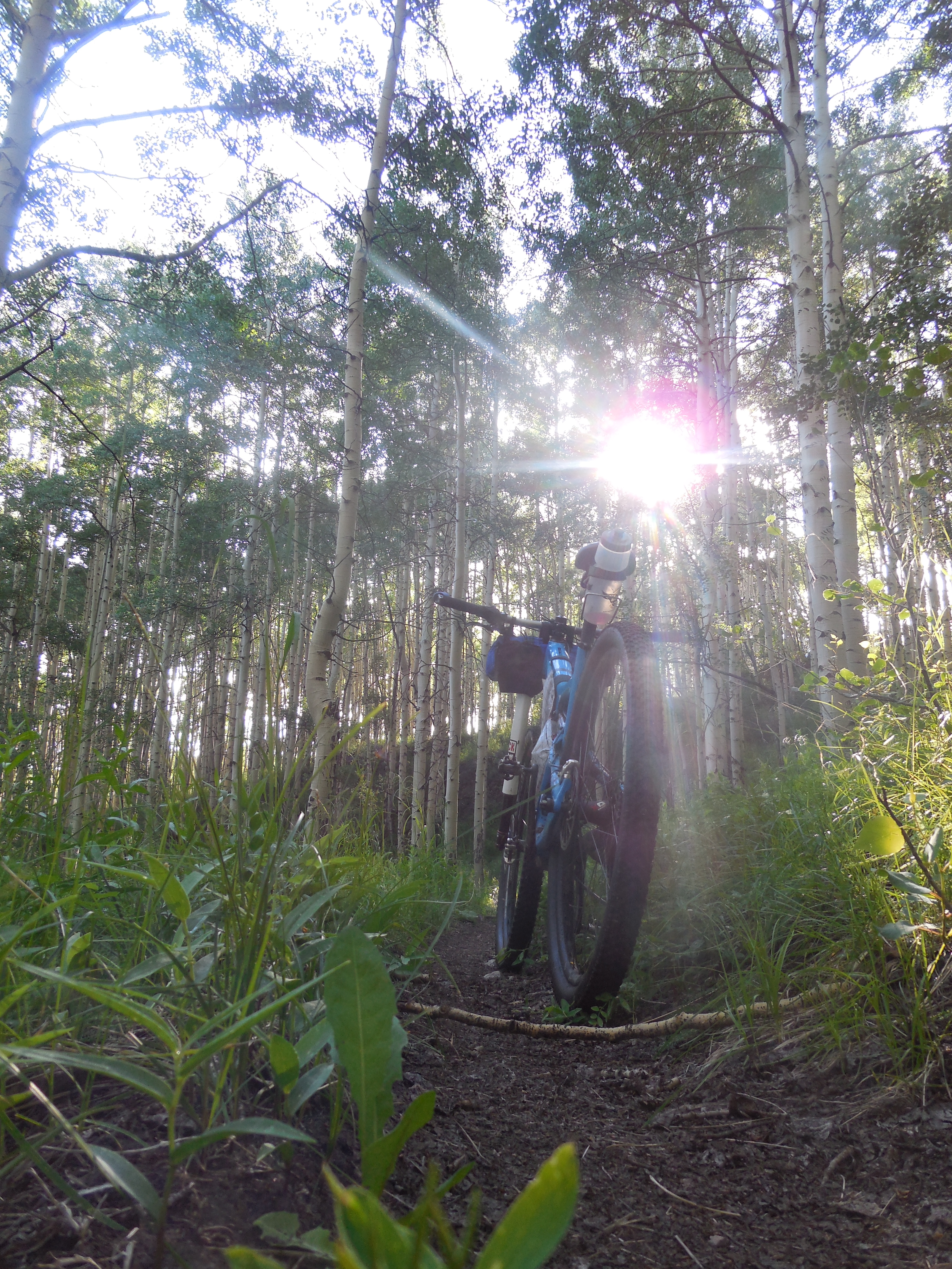 Then again there are the “Jedi Trees”, a tiny line of flowing dark loamy soil, barely visible through greenery that is almost handlebar height, swooping here and there, through a massive aspen grove. So fast and relatively smooth, yet lurker rocks hide in the deep dark grass and surprise rock gardens pop into view just when you get to flying.