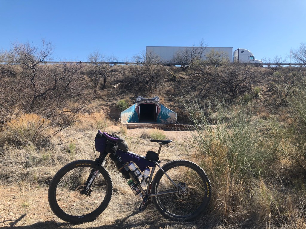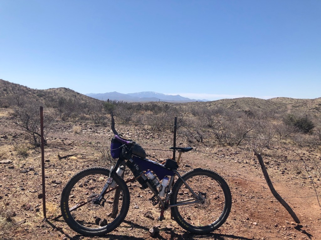 I arrived at Picketpost the night before my start to camp, ride, and meet up for a photo shoot the next day. The sun was scorching hot, adding to my stress. Luckily being in the desert and getting things finalized, instead of just thinking about it, was much more productive in nature. That afternoon I headed into Tucson to meet up with Eddie, drop my car at his house and get a ride to Parker Canyon Lake. Got there just as the sun was setting, Julie and Bruce were there headed to sleep for Julie’s early morning start. They offered to lend me a sleeping bag and pad so I could just be dropped off and start with my streamlined, no sleeping bag kit. I got set up in the sanded tall grass among the cow pies, set my alarm for 1:20AM and tossed and turned for a five hours or so. (I will come back to this, but people can be the best and I am going to try and make more of a thing of it in the future)