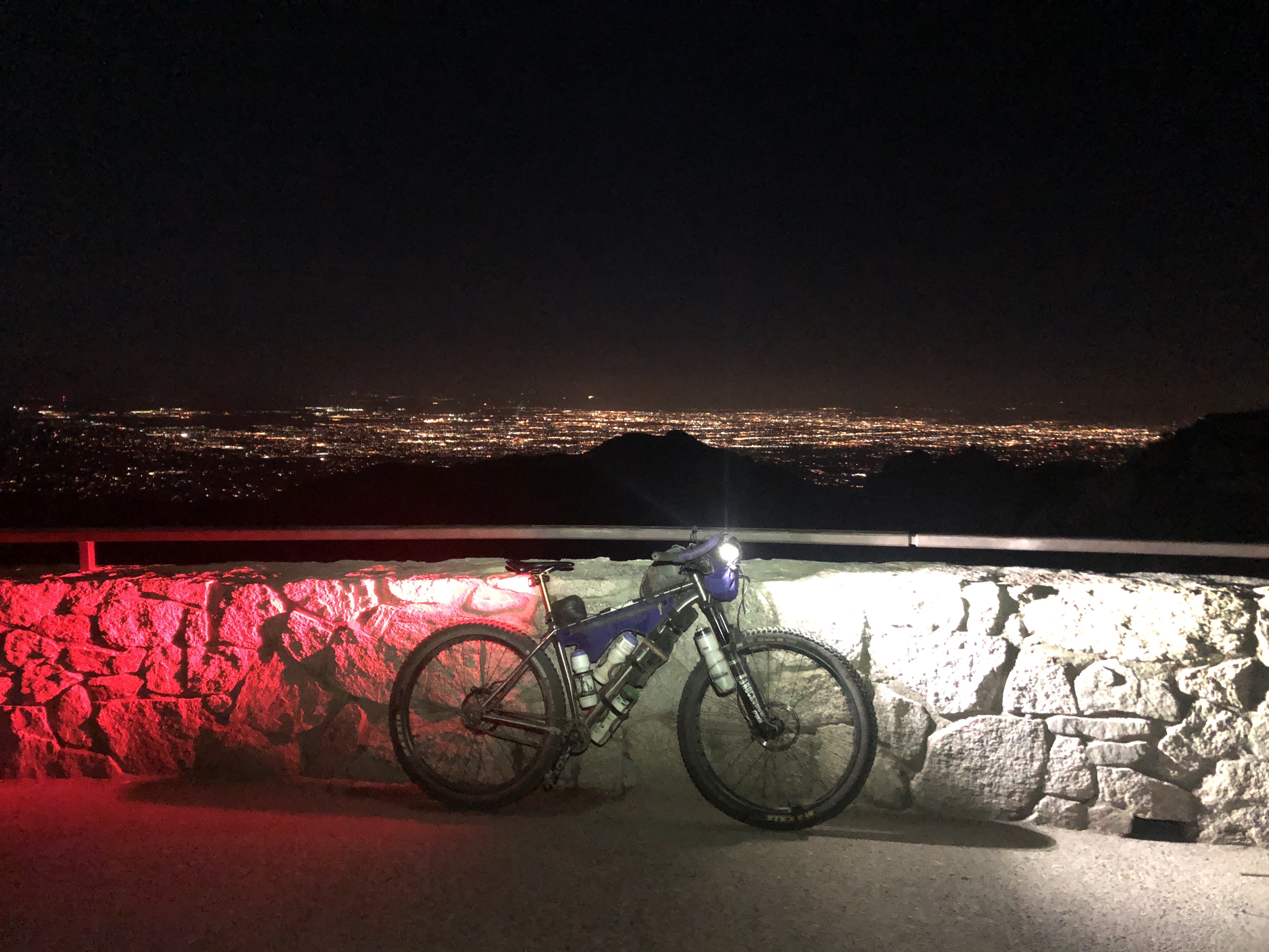 I spent the rest of the first day riding along when it felt good and hoping off to hike Anytime it didn’t feel good. Yes I walked a lot. At times it is very hard to not berate yourself over walking so much with your bike along side you, but I swear it works. I made the Rocking K with time to spare, but once getting my food reorganized I didn’t end up needing much so just some bonus gummy worms, cold drinks and rice crispy! Then Reddington, and back to the AZT. Then Lemmon. Dang what a mountain, so long of a climb, such a neat ascent with the lights of Tucson slowly getting lower and lower, the trees getting bigger, the air cooler with every turn.