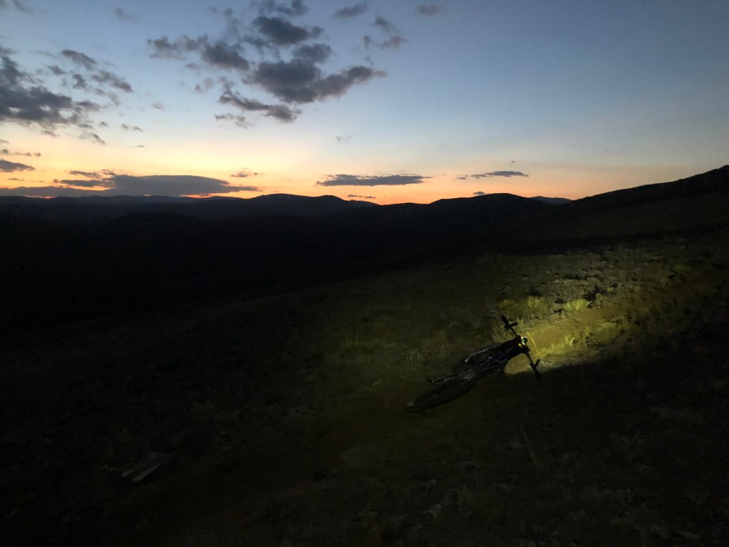 It was also torture. The trails were rough, so much dirt has been shaken loose from the rocks by a summer of use and abuse, leaving not much more than rocks in so many places. My body was not the least bit ready for this beat down and my legs and hands were protesting from the get go and the route didn’t let up. At 160 miles I almost took the highway home, Gold Creek Trail crushed my hands, feet and knees, I couldn’t imagine what Fossil was gonna feel like. The night was looong! So much darkness, and with no bivy gear that meant a long night of riding and pushing and also falling asleep on the bike riding and pushing. I ended up taking about four 10 minute naps in attempt to keep my eyes open and rubber on the trail. The whole night was laborious, it took so long to cover any miles as I was riding sloppy and falling asleep, also my water bottles froze solid so there was no water, that meant not much food. Oh and it hurt! I swear every step and every pedal stroke hurt deep in my legs, knees, hands, and forearms. Still I kept drudging along, still I was incredibly happy.