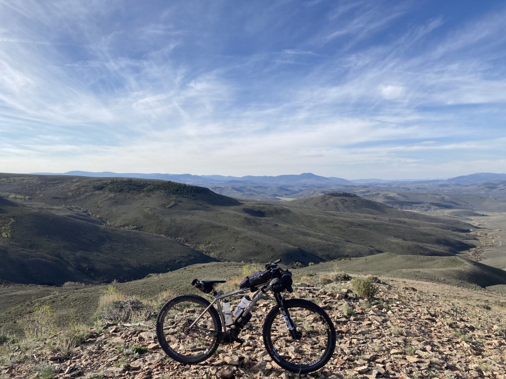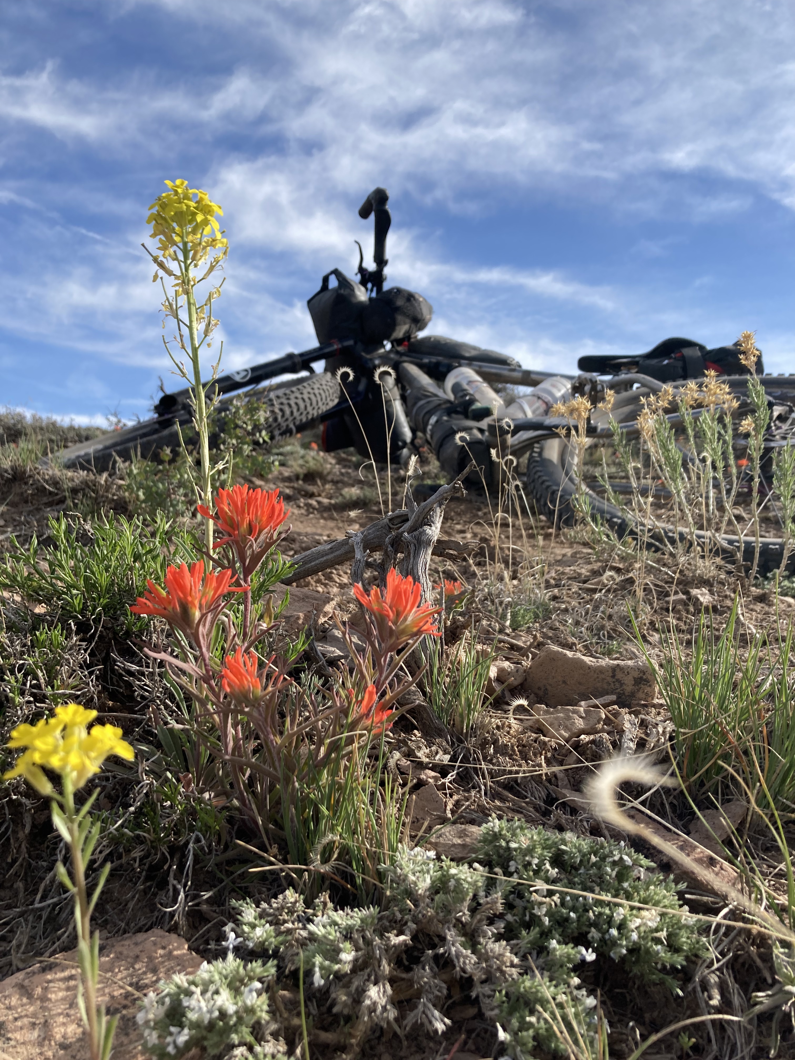 I spent Sunday morning getting my gear in piles, my bags on the bike, food prepped, in between doing a few chores and hanging out with my family. Finally I got the bags packed, bottles filled and at 4:30 in the afternoon I started out of town and climbed up into the sunny sage covered hills. It was fairly hot, but the breeze was blowing and it felt great to be pedaling. I took it easy, and kept reminding myself to keep taking it easy, as I climbed higher and got farther away from town. Signal Mesa was quiet with only one motorcyclist passing me along a stretch of dirt road, he was super kind and even held a gate open for me as we leapfrogged briefly.